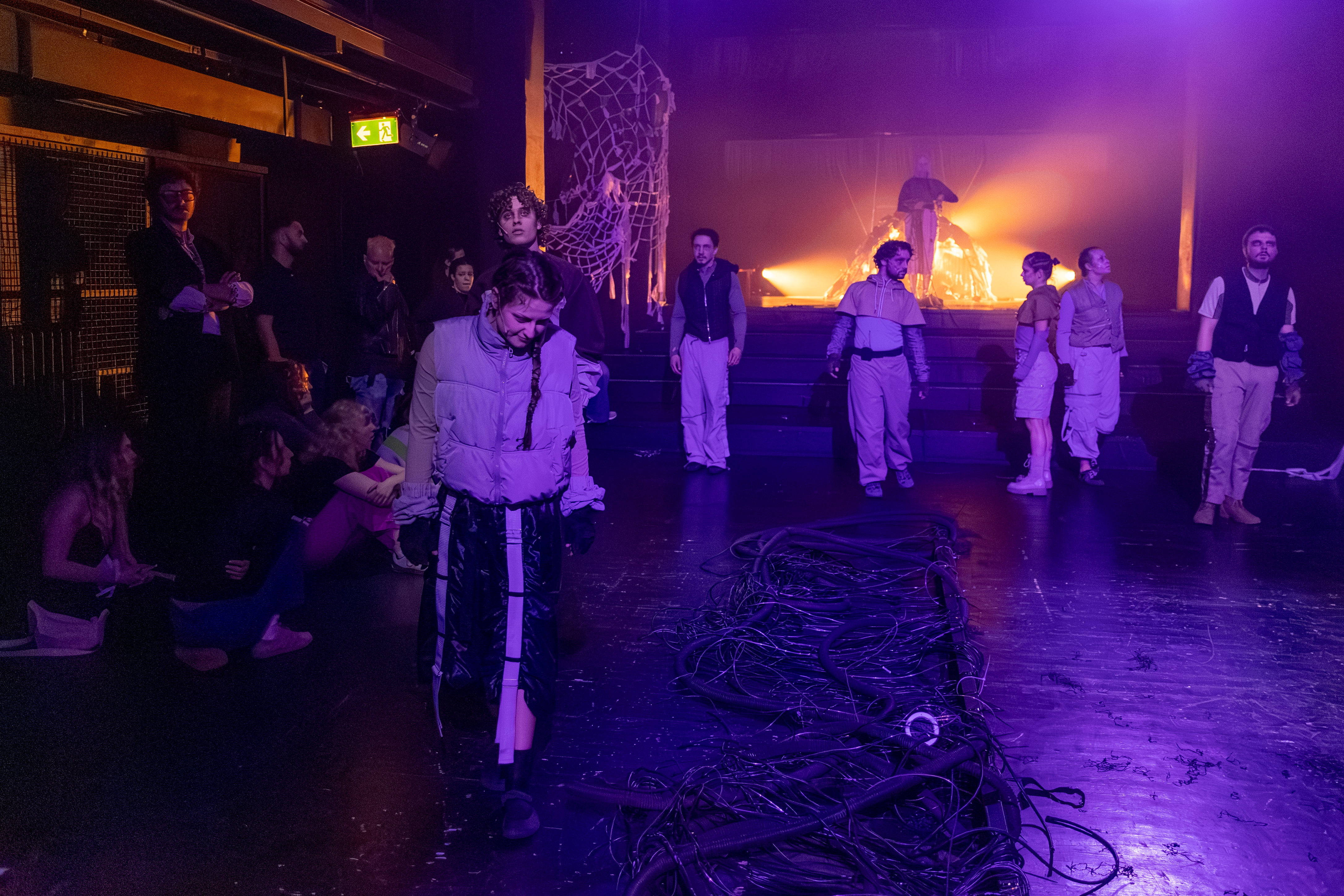 Inscenace ec dysis crisis, mami není představení, na které byste se v klidu posadili do sametové sedačky a spořádaně čekali, až spadne opona. Vlastně tu vůbec žádné sedačky nejsou. Prostor se stává mapou chaosu. Najdete tu Niagarské vodopády, Bermudský trojúhelník a v předsálí open bar, který je vám plně k dispozici. Pro tiché pozorovatele, kteří se chtějí před tlakem okolí alespoň na chvíli schovat, jsou připravené obyčejné lavičky fungující jako safe space.
