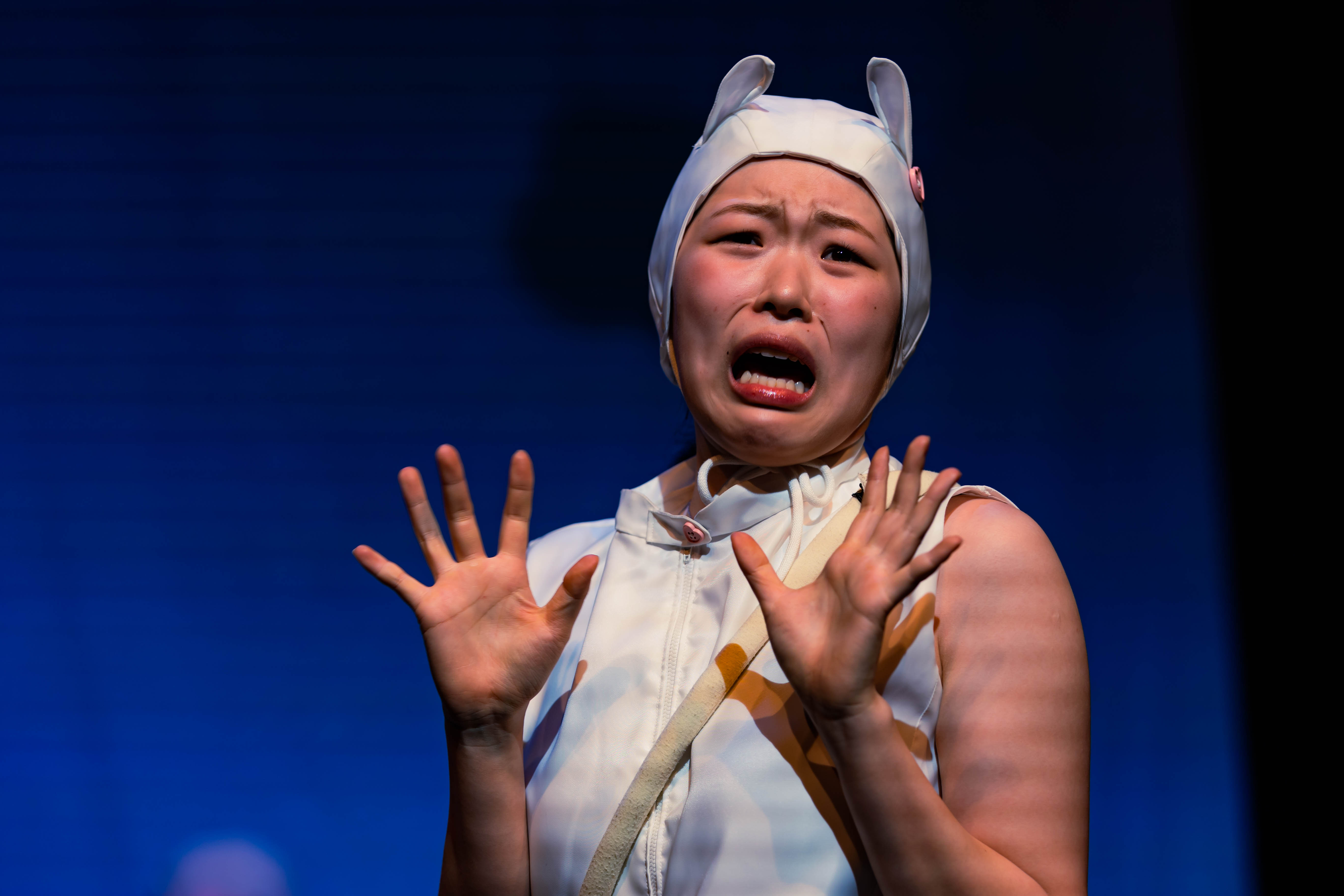 The Korean adaptation of Animal Farm by the students of the Korean National University of Arts offers a visually captivating, yet conceptually simplified interpretation of Orwell’s famous allegory. Taein Kwak’s production relies on repetition, stylized acting, and a sensory audience experience, shifting the focus away from the political layer toward aesthetics and atmosphere. The result is an appealing, almost fairy-tale-like world, beneath whose surface lies an unsettling image of a willingly accepted dictatorship.