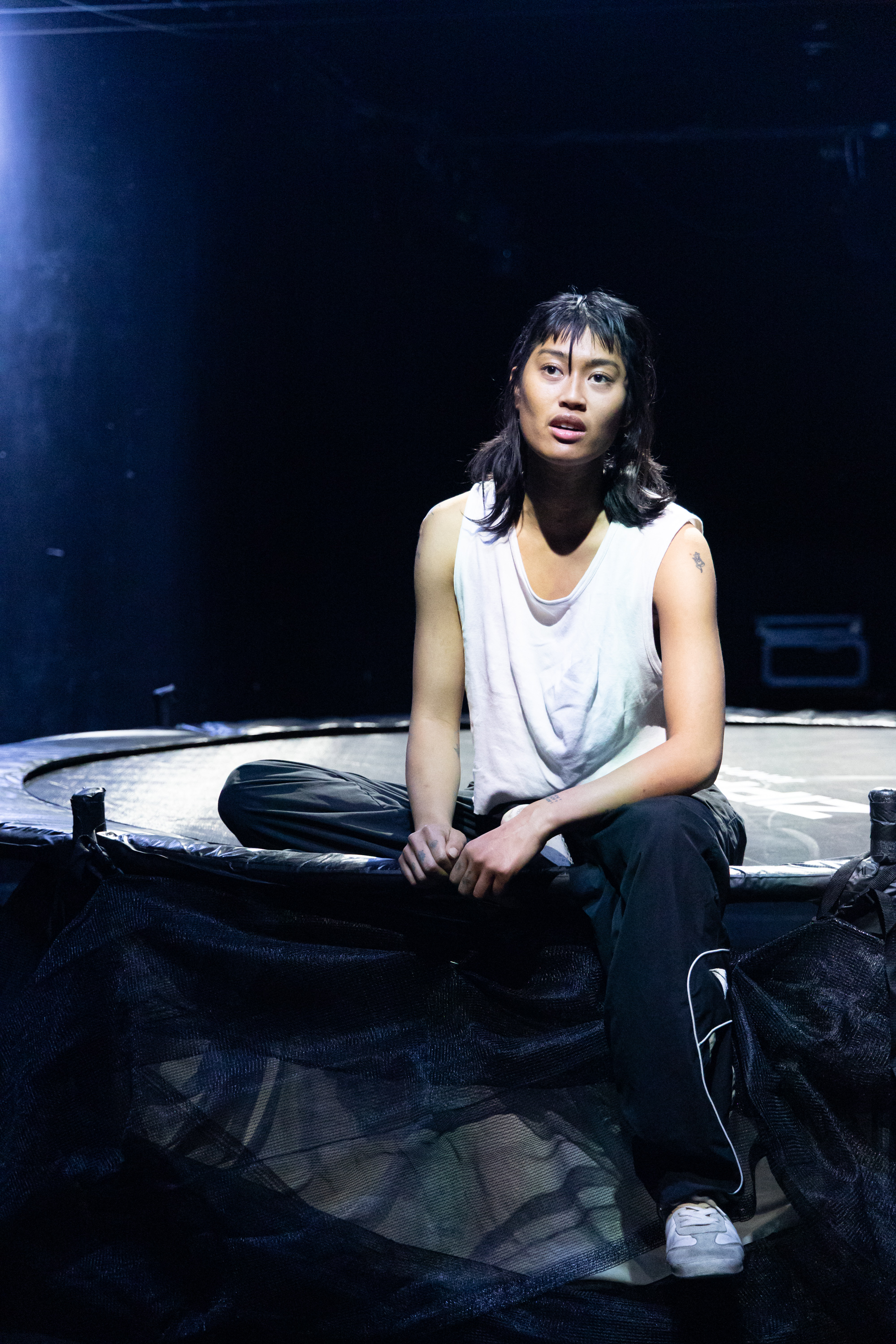 Jevištní tvar je rozkročen do dvou rovin. V první polovině je dramatický prostor tvořen jakýmsi abstraktním snovým bezčasím, v němž jen velmi vzdáleně tušíme nemocnici. Dramatický text prozkoumává především pocit úzkosti, vypořádávání se s traumatickými zážitky a jejich následky. Předkládá vizi života jako věčného padání do neznáma, v jehož závěru nezáleží na ničem kromě dopadu. Bylo by zjednodušující interpretovat tento dopad pouze jako smrt či lidskou konečnost, v kontextu inscenace jde spíše o zpracování duševních otřesů a nalezení vnitřního klidu. Skrze dva fantaskní příběhy, o muži, jenž spadl z výšky a dopadl bez zranění jako kočka, a o dámě, jež si zlomila nohu, ale za dva týdny již aktivně poklízela v domácnosti, se text dotýká a kriticky reflektuje společenské očekávání věčně pozitivního přístupu k životu. Současně trefně poukazuje na vžitou distinkci mezi mentálním a fyzickým zdravím.